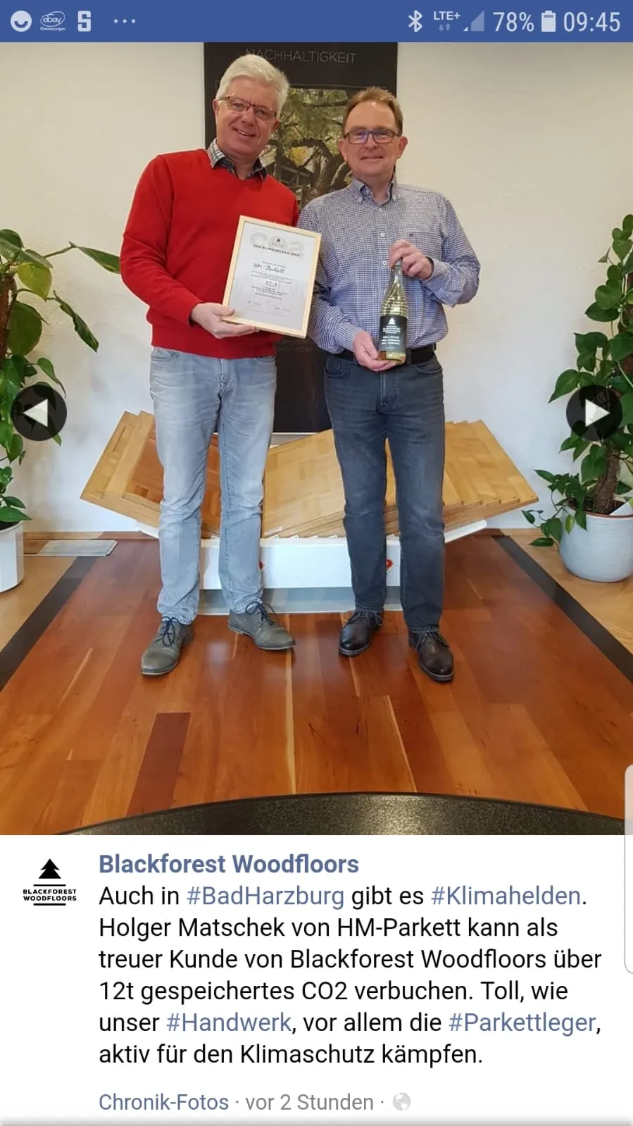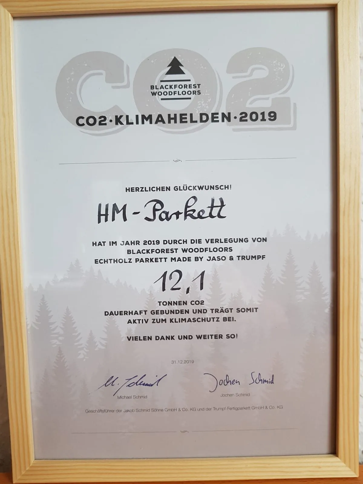12 Tonnen CO2-Bindung in 2019 durch die Verlegung von Echtholzparkett